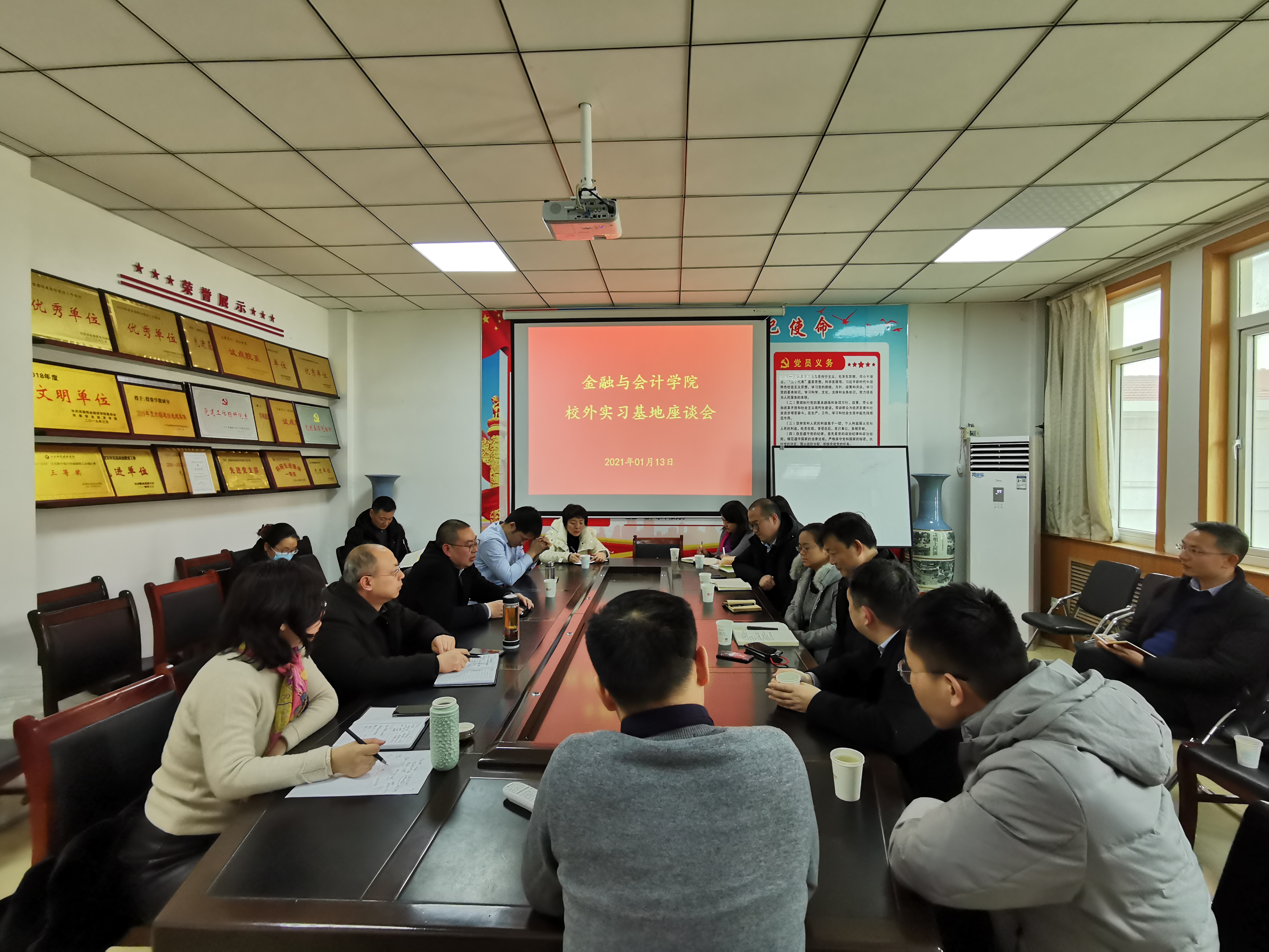 为提高学生的综合素质及社会竞争力拓宽毕业生的实习、就业渠道,培养更适合社会需求的专业人才,进一步完善校企协同育人机制,2021年1月13日,世界杯体育官方网站特邀请国富会计事务所、郑州市银丰典当、国元证券股份、郑州金慧科技、华建会计师事务所、河南华尔汇会计师事务所、河南瑞森商业运营管理有限公司、河南中瑞金鼎资产评估有限公司、星原保险等多家“校外优秀教学实习基地”代表来院514会议室参加座谈会,座谈会由学院院长黄良杰主持,班子成员和教研室主任参加座谈。