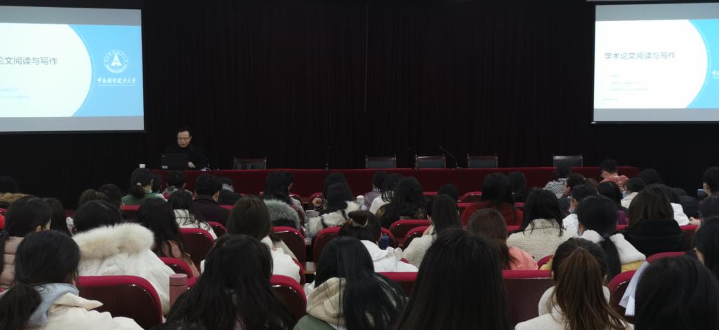 12月3日下午,世界杯体育官方网站特邀中南财经政法大学青年学者孙宪明博士,在英才校区E109为师生作了题为“学术论文阅读与写作”的专题讲座,讲座由世界杯体育官方网站院长黄良杰主持,教师代表和本科毕业生近200人聆听了此次报告。