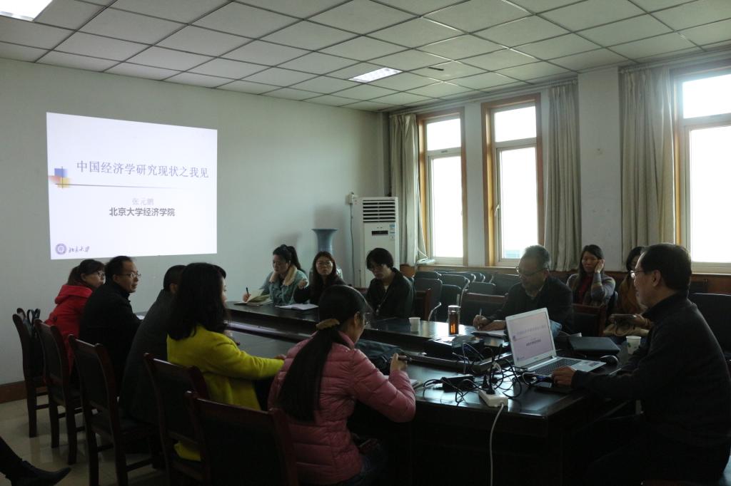为了进一步拓宽世界杯教师的学术视野、提高教研水平,11月11日上午,金融学院邀请北京大学经济学院张元鹏教授作了题为《中国经济学研究现状之我见》的专题讲座。本院教师认真聆听了本次讲座,工程管理学院院长王筝也应邀参加了讲座。讲座由金融学院院长黄良杰主持。