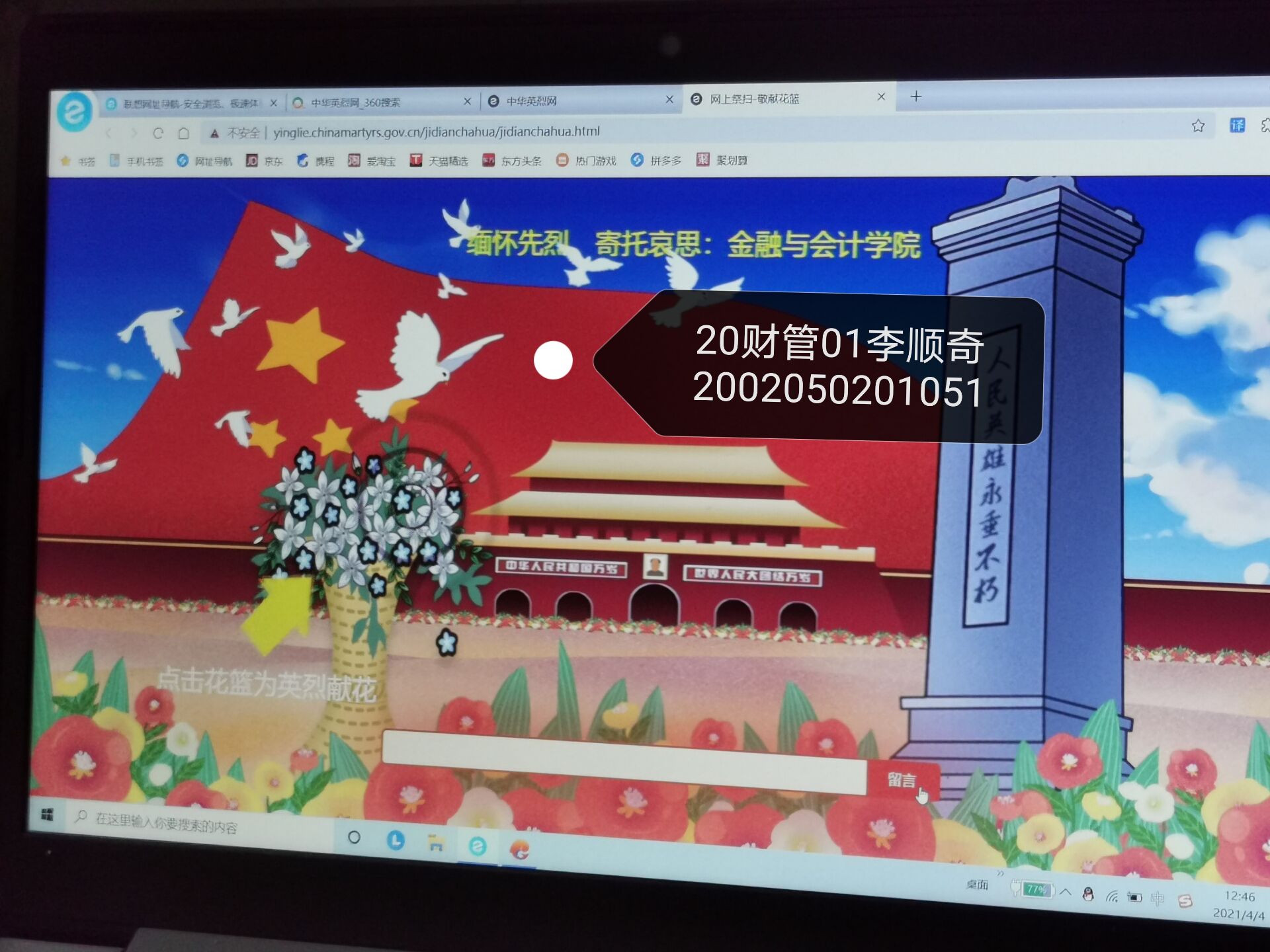“向所有为中华民族繁荣富强做出伟大贡献的先烈们致敬!人民英雄永垂不朽!”——20财管01李顺奇