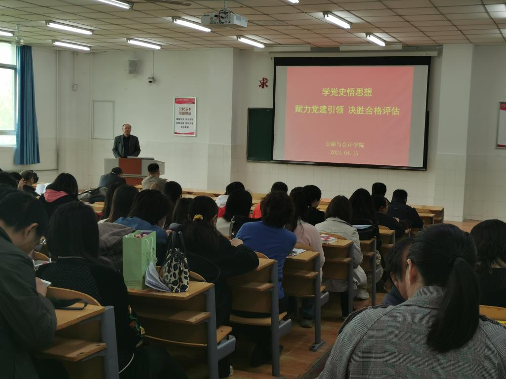 为进一步统一思想,加强党史学习教育与迎评促建工作有机结合,激励和动员全院师生在决战决胜本科教学工作合格评估中全力以赴,夺取迎评促建最终胜利,4月15日下午,世界杯体育官方网站在英才校区综合实验楼W210召开“学党史悟思想,赋力党建引领,决胜合格评估”学习教育活动。学院全体教职工参加会议,会议由学院党委书记陈复昌主持。