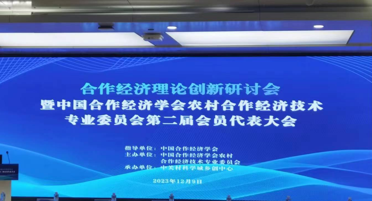 为全面贯彻落实党的二十大精神和中央一号文件部署,深入实施新型农业经营主体提升行动,交流合作经济理论创新成果,推进合作经济组织规范健康发展,增强合作经济组织发展实力、充分发挥合作经济组织在乡村振兴战略中的作用,合作经济理论创新研讨会暨中国合作经济学会农村合作经济技术专业委员会第二届会员代表大会于2023年12月9日上午在北京中关村科学城乡村振兴创新中心召开。河南牧业经济学院副校长黄良杰应邀参加此次会议并作主题报告。