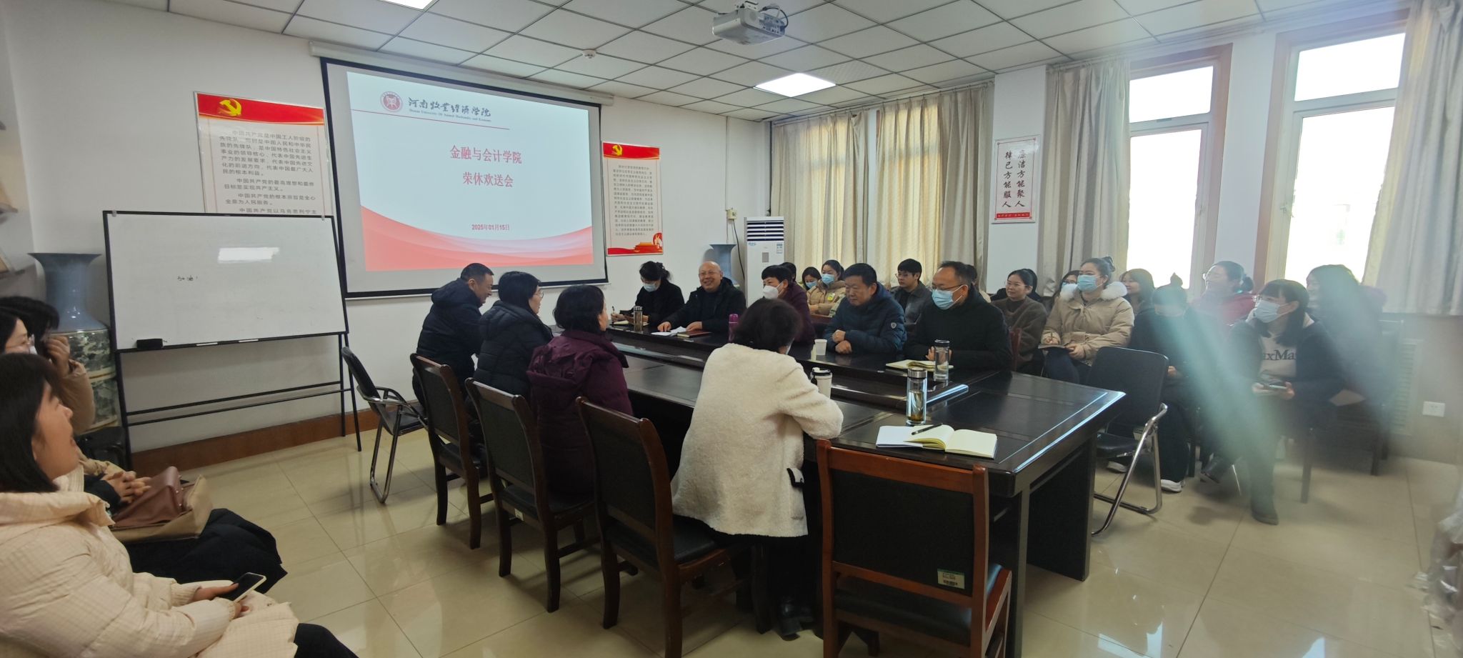 2025年1月15日上午,世界杯体育官方网站在514会议室召开2024年退休教师荣休欢送会,为退休老师送上诚挚的敬意与祝福。2024年退休的刘专、杨新亭两位老师到场参加。我校离退处副处长魏彩娟、离退处管理服务科科长陈海燕、世界杯体育官方网站班子成员和教师代表参加了欢送会。会议由学院党委书记陈复昌主持。