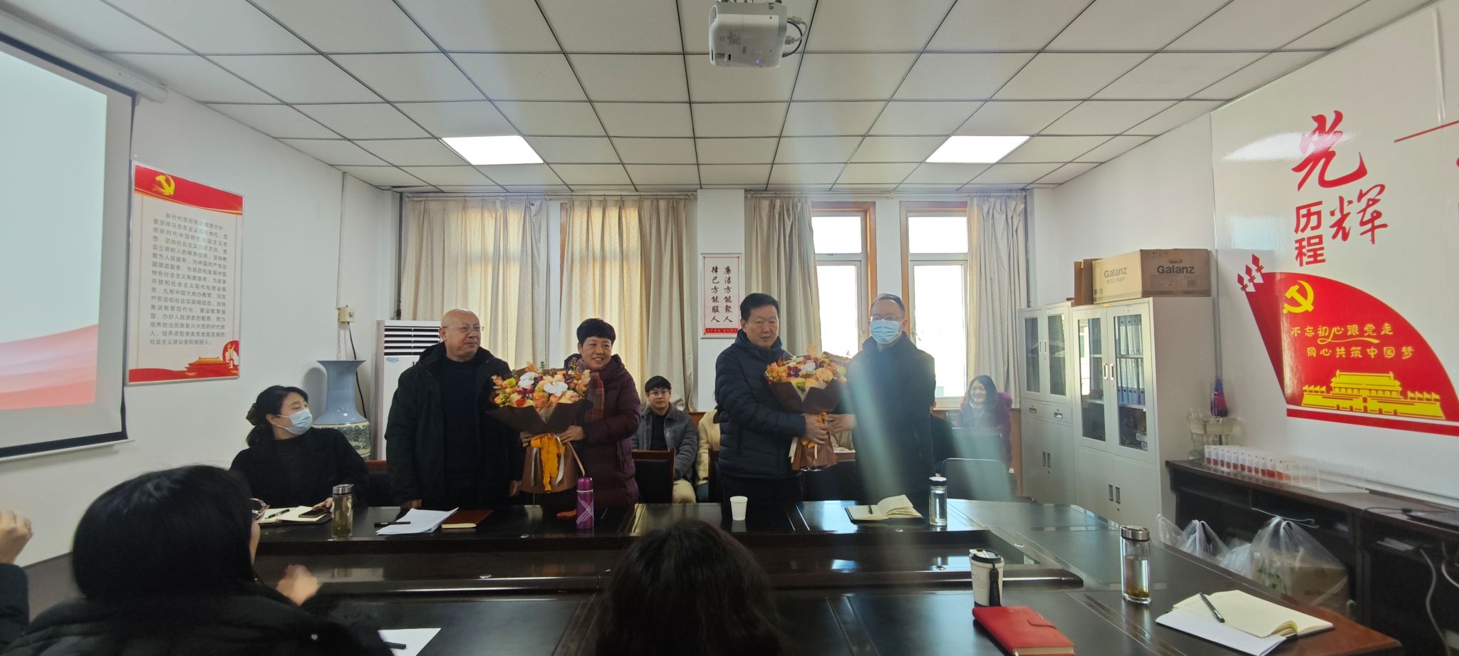 会议伊始,学院领导首先代表大家向退休老师献上鲜花,并代表全体师生向两位退休教师致以衷心的感谢和崇高的敬意,感谢他们多年来为学院教育事业的辛勤付出和无私奉献。领导回顾了两位教师在学院工作期间的突出事迹和卓越成就,他们以严谨的治学态度、高尚的师德风范和敬业奉献精神,为学院的发展作出了不可磨灭的贡献。