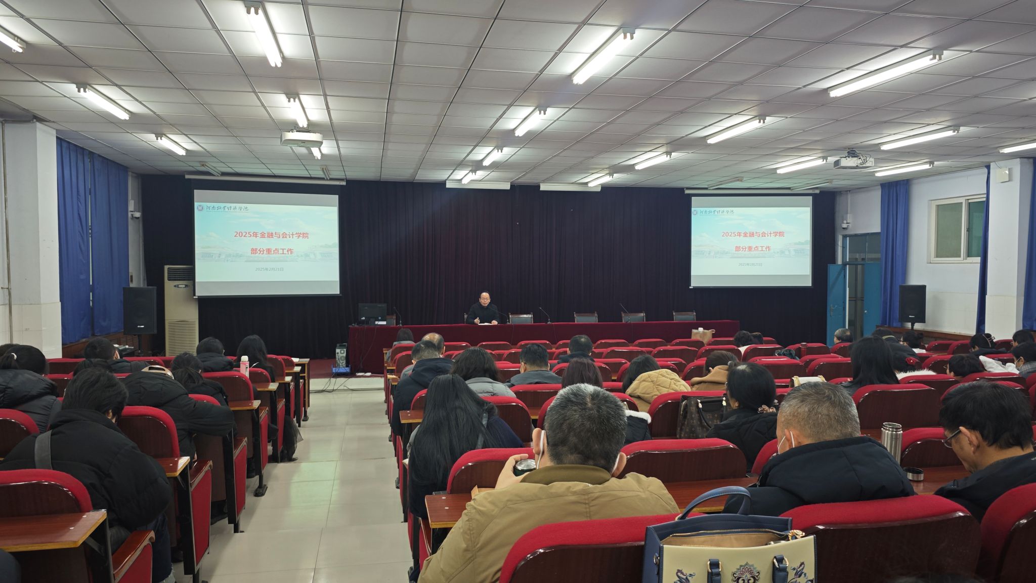 会上,副院长崔海红首先传达了学校期初教学工作会议精神,为学院新学期教学工作明确了方向和要求。随后,贾院长对寒假工作进行了全面总结,肯定了全体教职工在假期中的工作成果,并对2025 年的各项工作进行了详细安排部署。