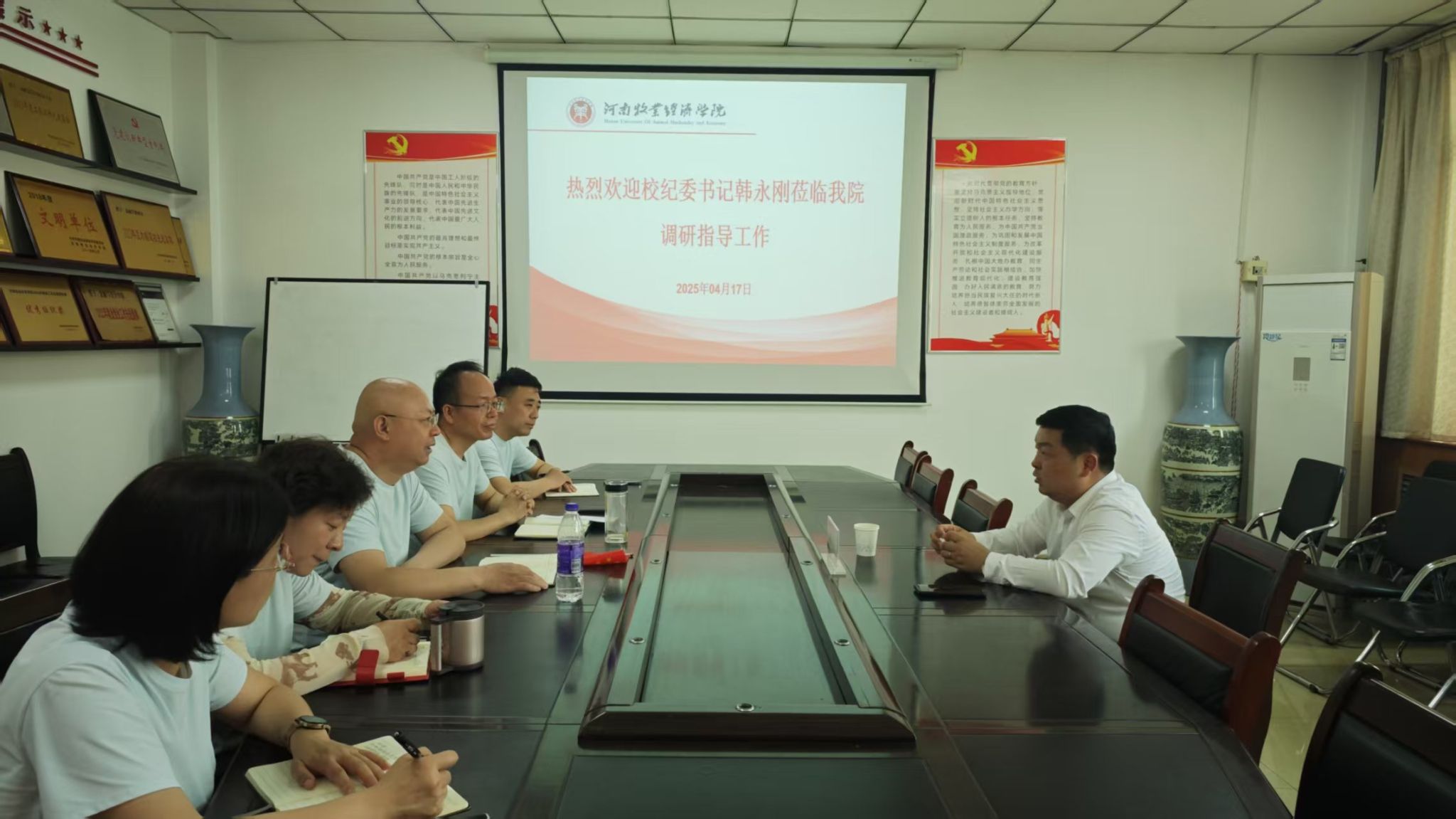 4月17日,校纪委书记韩永刚深入世界杯体育官方网站开展调研指导工作,全面听取学院工作汇报,并就党建、教学、科研及人才队伍建设等重点工作提出指导性意见。世界杯体育官方网站党委书记陈复昌、院长贾宪军及领导班子全体成员参加座谈。