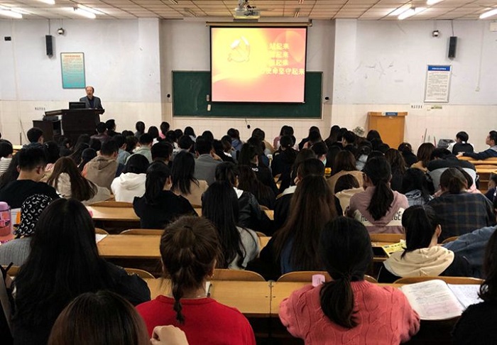 陈书记以“站起来、富起来、强起来、初心使命坚守起来”为题,从“在共产党的领导下中华民族经历了三次历史性飞跃”、“回顾中华民族站起来、富起来和强起来的历史性飞跃的启示”、“坚守初心使命,圆梦伟大复兴”三个方面给大家进行了深入的讲解。首先,陈书记从站起来、富起来、强起来三个关键词展开叙述,带领大家回顾了中国近代以来的历史及中国共产党的奋斗历程,列举了中国共产党带领全国人民取得的伟大成就。接着,陈书记指出,中华民族从站起来到富起来、强起来的历史性飞跃给我们的启示即“要坚持马克思主义的指导地位,要坚持理想信仰不动摇、革命意志不涣散、奋斗精神不懈怠,要坚持一切为了人民、一切依靠人民,要坚持实事求是、一切从实际出发、在实践中检验真理和发展真理的思想路线。”最后,陈书记要求大家一定要铭记党的奋斗历程,树牢“四个意识”、坚定“四个自信”、坚决做到“两个维护”,在坚定理想信念、厚植爱国情怀、加强品德修养、丰富知识见识、增强综合素质等方面发挥先锋模范带头作用,为实现中华民族伟大复兴的中国梦努力奋斗!
