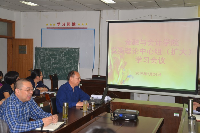 9月24日上午,世界杯体育官方网站按照“不忘初心、牢记使命”教育活动方案安排,围绕坚定理想信念专题召开党委理论学习中心组(扩大)学习会议,会议在教学办公楼225会议室召开,全体班子成员、各党支部书记和支部委员参加了此次学习会议,会议由党委书记陈复昌主讲。
