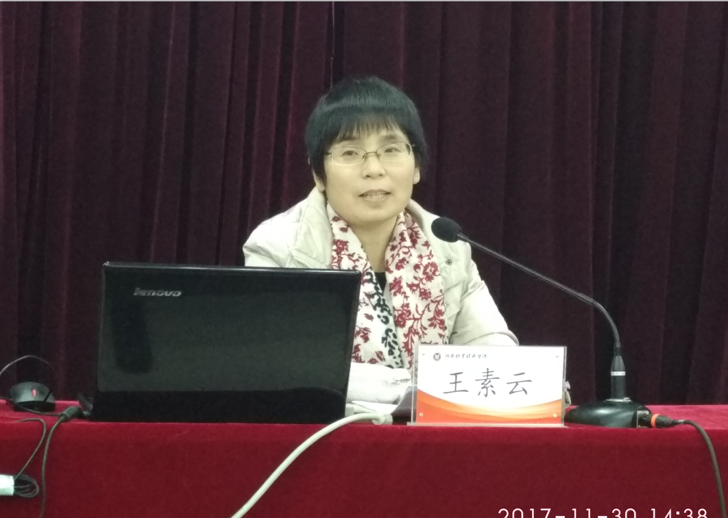 11月30日下午,马克思主义学院院长、学校学习贯彻党的十九大精神宣讲团成员王素云教授,在英才校区E109教室,为工商管理学院党总支、金融学院党总支、会计学院党总支全体教职工作十九大精神宣讲报告。报告会由金融学院党总支书记胡红林主持。