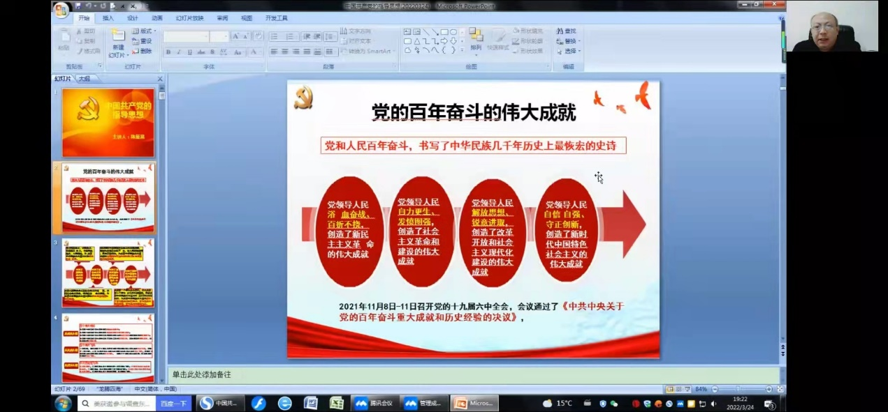 为弘扬伟大建党精神,全面深入领会“学思想·强素质·筑信仰·担使命”的深厚意蕴,切实加强入党积极分子的培养教育,确保发展的党员的质量,进一步提高党员素质。3月24日,世界杯体育官方网站“2022年第一期入党积极分子培训班”开班仪式在线上举行,世界杯体育官方网站党委书记陈复昌、党委副书记汪晓伟、学生第三党支部书记常彬彬及全体入党积极分子参加,会议由常彬彬主持。