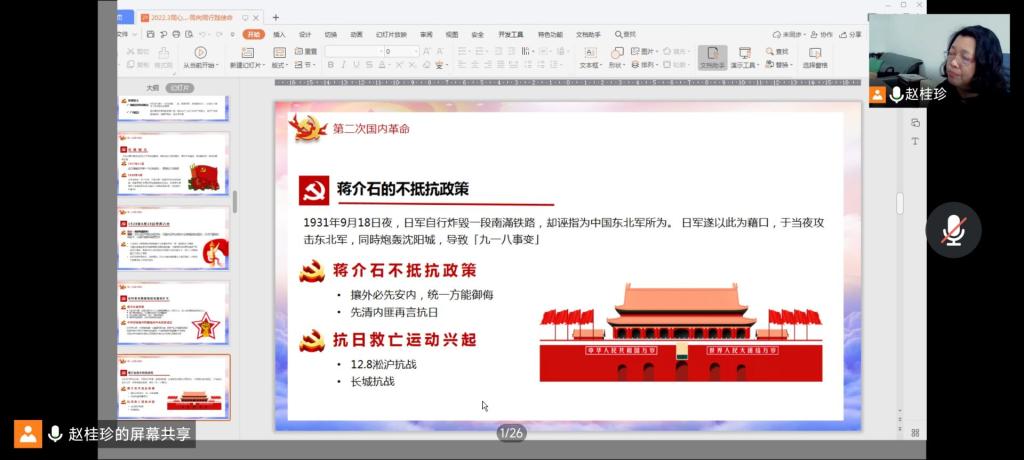 2022年3月30日中午,世界杯体育官方网站通过腾讯会议组织开展了线上“2022年第一期入党积极分子培训班“第六讲,党课主题为《同心同力学党史·同向同行践使命》,本次党课由世界杯体育官方网站组织员赵桂珍老师主讲。