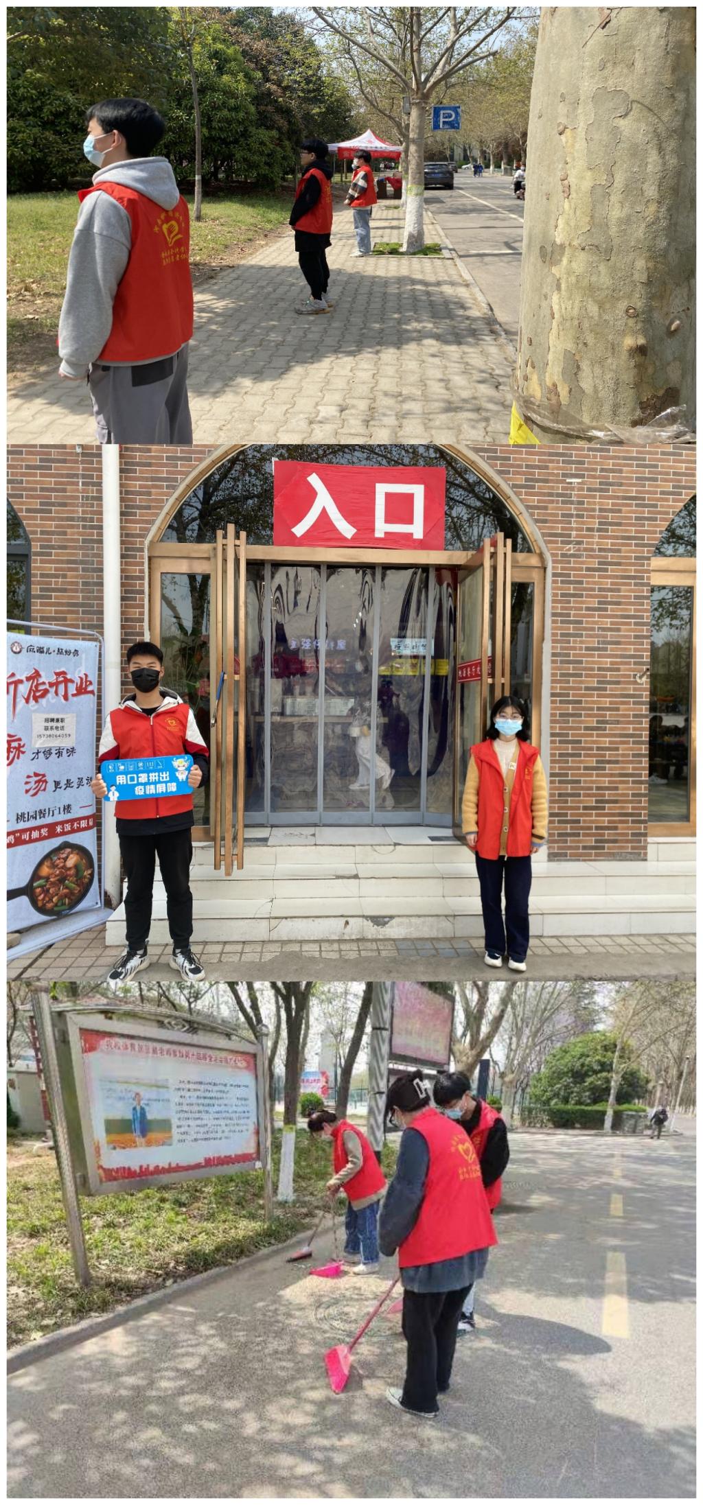 每位小组同学都在活动开始时准时到岗,态度认真,服从管理,在活动过程中极为认真负责,一丝不苟。一组成员刘畔同学刚下课就及时赶到活动地点,尽管来不及填饱肚子,但想到这是为了同学们的安全负责,是为了学校的管理负责。刘畔同学还是坚持到了活动最后。疫情当下,每个人都要坚守好岗位,为早日战胜疫情奉献自己的力量。第三小组成员李晨光同学负责打扫学校的景观大道,她说,这是自己上课吃饭经常路过的地方,每天享受着保洁阿姨的劳动成果—干净整洁的路面环境,直到这次亲自打扫,才了解到了他们的辛苦。爱护校园环境人人有责,并且自己刚接受过党员教育培训,更要发扬为群众服务的党员精神!