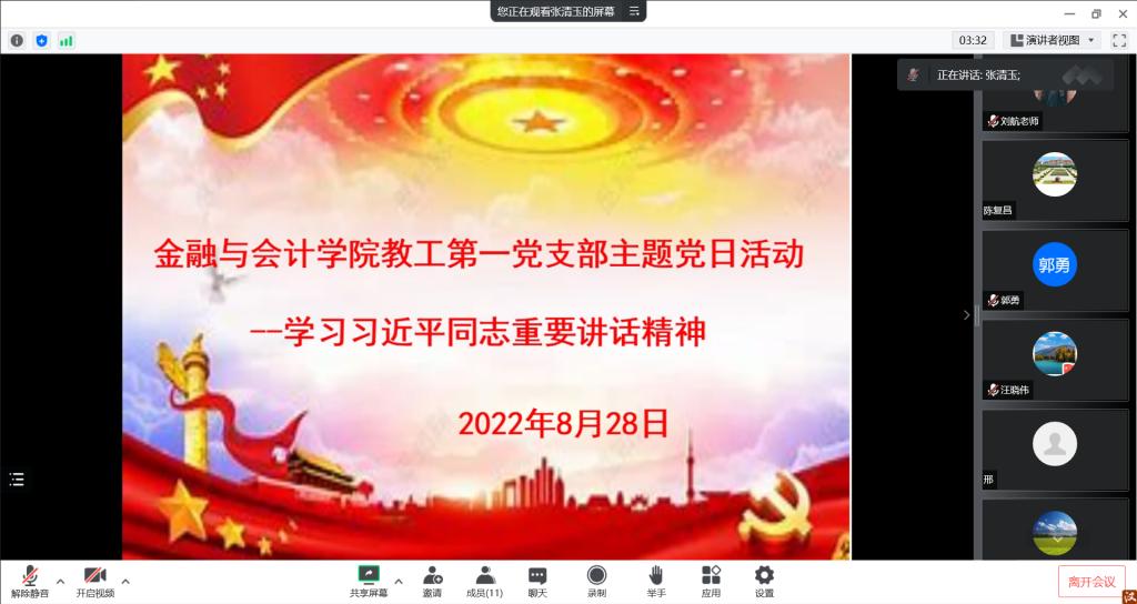 2022年8月28日,世界杯体育官方网站教工第一党支部举行主题党日活动,采用线上会议形式举行。本次主题党日活动的主题是围绕学校7、8月份主题党日活动安排进行理论学习与研讨,并学习习近平总书记给“中国好人”李培生、胡晓春回信精神,会议由支部书记张清玉同志主持。