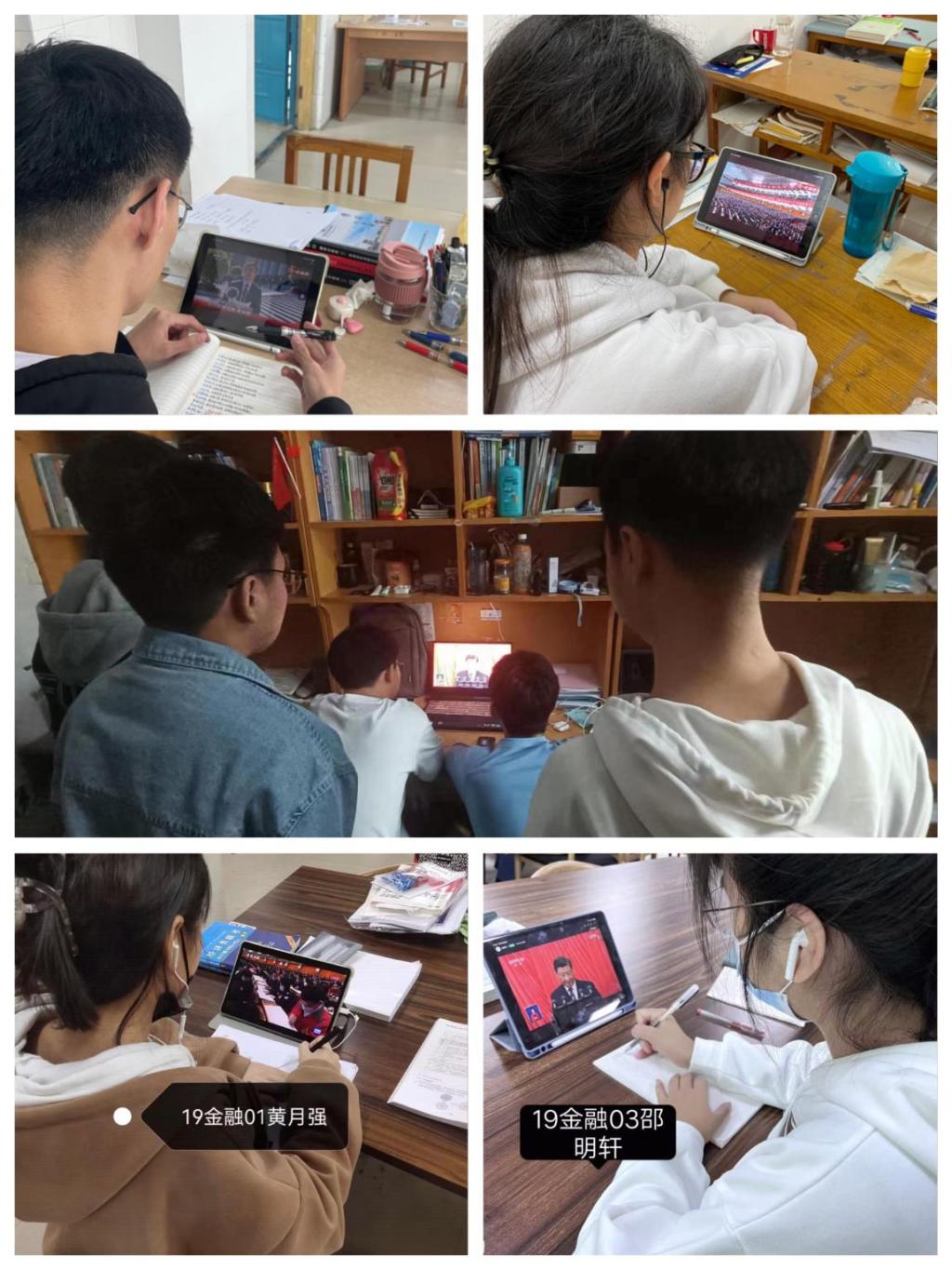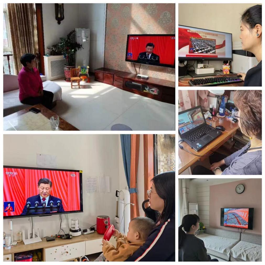 师生们精神抖擞,怀着激动的心情,认真聆听观看,随着屏幕里传出来的声音而欢呼而鼓掌。大家表示,观看后倍感振奋、备受鼓舞! 一定要认真学习习近平总书记在中国共产党第二十次全国代表大会上的报告精神,全面贯彻习近平新时代中国特色社会主义思想,以饱满的工作状态、学习热情,为祖国经济发展做贡献,为实现中华民族伟大复兴尽一份力。
