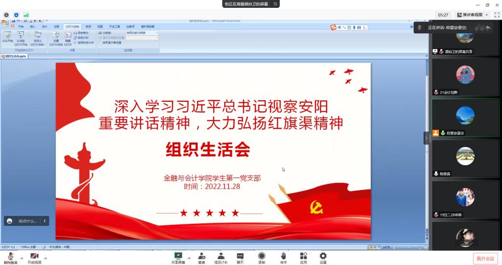 世界杯体育官方网站党委书记陈复昌首先指出,组织生活会与“三会一课”、党日活动、评议党员都是基层党组织的重要组织生活制度,我们要认真落实。这次开展“深入学习习近平总书记视察安阳重要讲话精神,大力弘扬红旗渠精神”专题组织生活会,我们要紧扣主题,瞄准重点任务,深入学习习近平总书记视察安阳重要讲话精神,深刻感悟和躬身践行红旗渠精神。然后,与大家一起围绕习近平总书记视察安阳的重要讲话精神和红旗渠精神开展深入交流。陈书记最后提出要求,咱们学生第一党支部绝大部分党员是青年学子,一定要牢记和践行习近平总书记考察红旗渠时对广大青少年、年青一代提出的殷切希望,同时努力做好四点:一是要深入学习习近平总书记重要讲话精神,不断增强学习的自觉性,充分利用学习强国、青年大学习等学习平台加强政治理论学习,不断提高政治思想素质;二是要深刻感悟红旗渠精神的深刻内涵和时代价值,从红旗渠精神中汲取不竭精神动力,激发“越是艰险越向前”的英雄气概和“敢教日月换新天”的昂扬斗志;三是要在躬身践行红旗渠精神上下功夫,吃苦耐劳、摒弃骄娇二气,刻苦学习,知难而上,努力成为德智体美劳全面发展的社会主义建设者和接班人;四是要大力传承红旗渠精神,赓续红色血脉,引领广大青年学子践行和弘扬红旗渠精神。