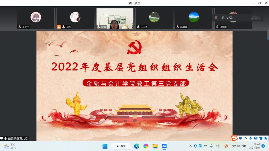 根据校党委《关于召开2022年度基层党组织组织生活会和开展民主评议党员的通知》及世界杯体育官方网站党委的统一安排部署,世界杯体育官方网站教工第三党支部于2023年2月11日以线上会议形式召开了2022年度组织生活会,并开展了民主评议党员工作。世界杯体育官方网站副院长邵翠丽以普通党员和党委代表的双重身份参加了本支部的组织生活会,并对组织生活会进行督促指导、提出改进建议。会议由教工第三党支部书记苗霞主持,支部全体党员参加会议。