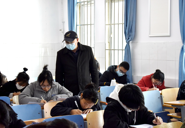 为进一步检验入党积极分子党课培训成果,考察其对党的基本理论知识掌握程度,2月23日下午2点30分,世界杯体育官方网站于教学楼A505-A509教室举行入党积极分子结业考试。162名入党积极分子参加了此次考试,全体辅导员老师参加监考。党委书记陈复昌、副书记汪晓伟参与巡考。