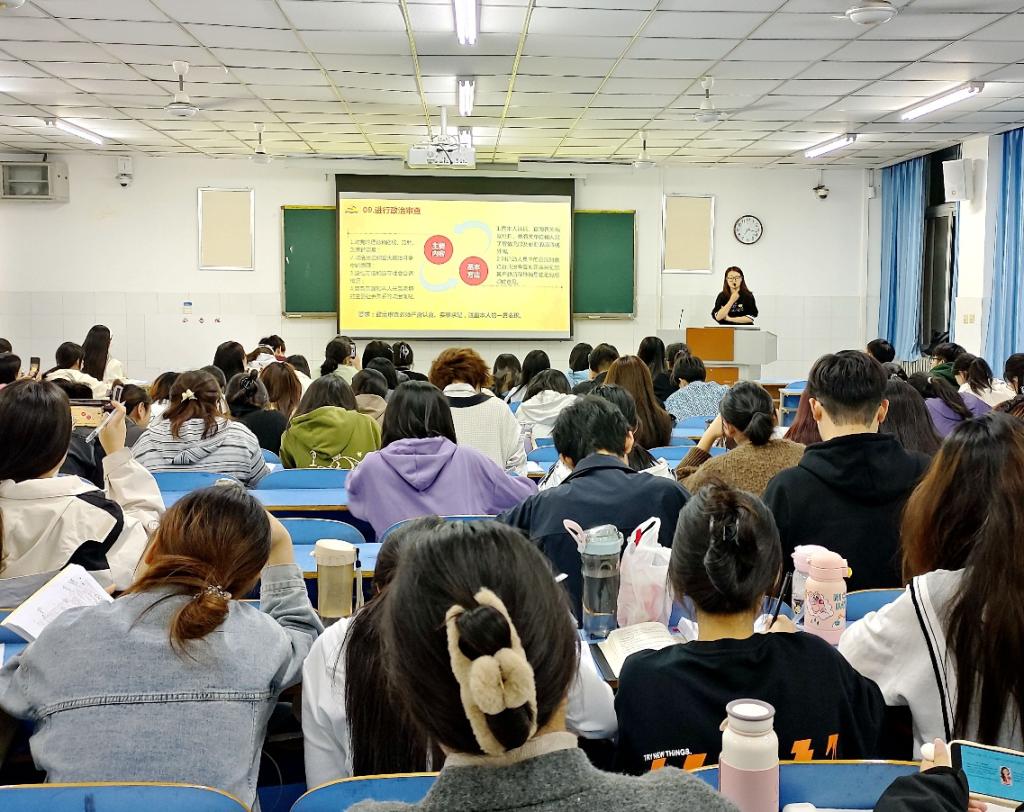 张老师主要从入党程序和注意事项两方面进行讲述,第一部分,张老师详细讲述了申请入党的条件、入党积极分子的确定和培养、发展对象的确定和考察、预备党员的接收、预备党员的教育考察和转正五大方面的内容,使大家对大学生入党的流程有了进一步的了解。第二部分,张珂瑜老师讲述了入党申请书、入党志愿书、思想汇报等内容的写作注意事项,使大家更加了解了入党相关材料的写作要求。最后,张珂瑜老师希望全体学员能够将入党程序了熟于心,遵守党规党纪,增强对中国共产党的热爱,端正入党动机;同时希望大家能够从递交入党申请书开始,便要对党忠诚,坚定不移跟党走,为党的事业贡献自己的青春力量。