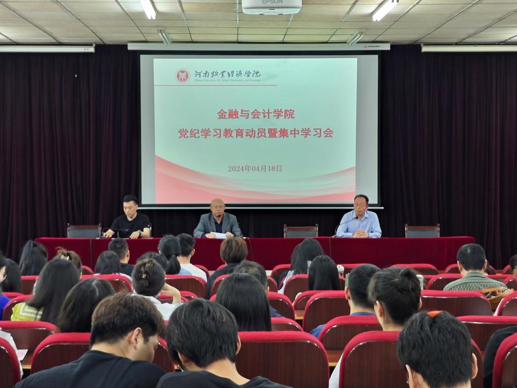 2024年4月18日下午,世界杯体育官方网站召开党纪学习教育动员会,并集中学习观看党纪学习教育读书班专题辅导报告。动员会由院长贾宪军主持,学院全体师生党员参加动员会暨集中学习会。