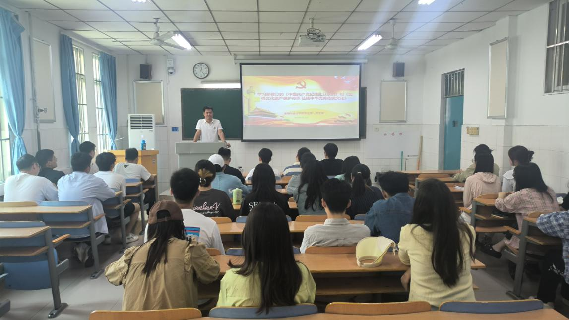 5月13日中午,世界杯体育官方网站学生第一党支部在教学楼A503教室举行五月份主题党日活动,学习《中国共产党纪律处分条例》和《加强文化遗产保护传承,弘扬中华优秀传统文化》内容,支部全体党员参加。活动由党支部书记顾自卫主持。