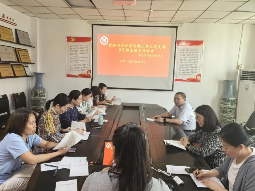 2024年5月17日下午,世界杯体育官方网站教工第二党支部在英才校区教学办公楼514会议室召开党纪学习教育研讨交流会,副校长黄良杰参加了研讨交流会并对党支部党纪学习教育进行了深入指导,教工第二党支部党员教师参加了会议,会议由教工第二党支部书记宋晓薇主持。