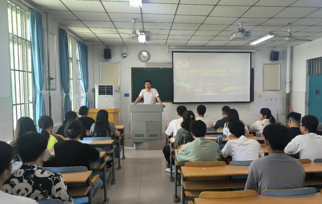 5月24日中午12点,世界杯体育官方网站学生第一党支部在教学楼A502召开支部大会,讨论邢宇鑫等9名预备党员转正问题。学生第一党支部书记顾自卫,组织委员原晨光、宣传委员王若华及支部全体学生党员参加了大会。会议由顾自卫主持。