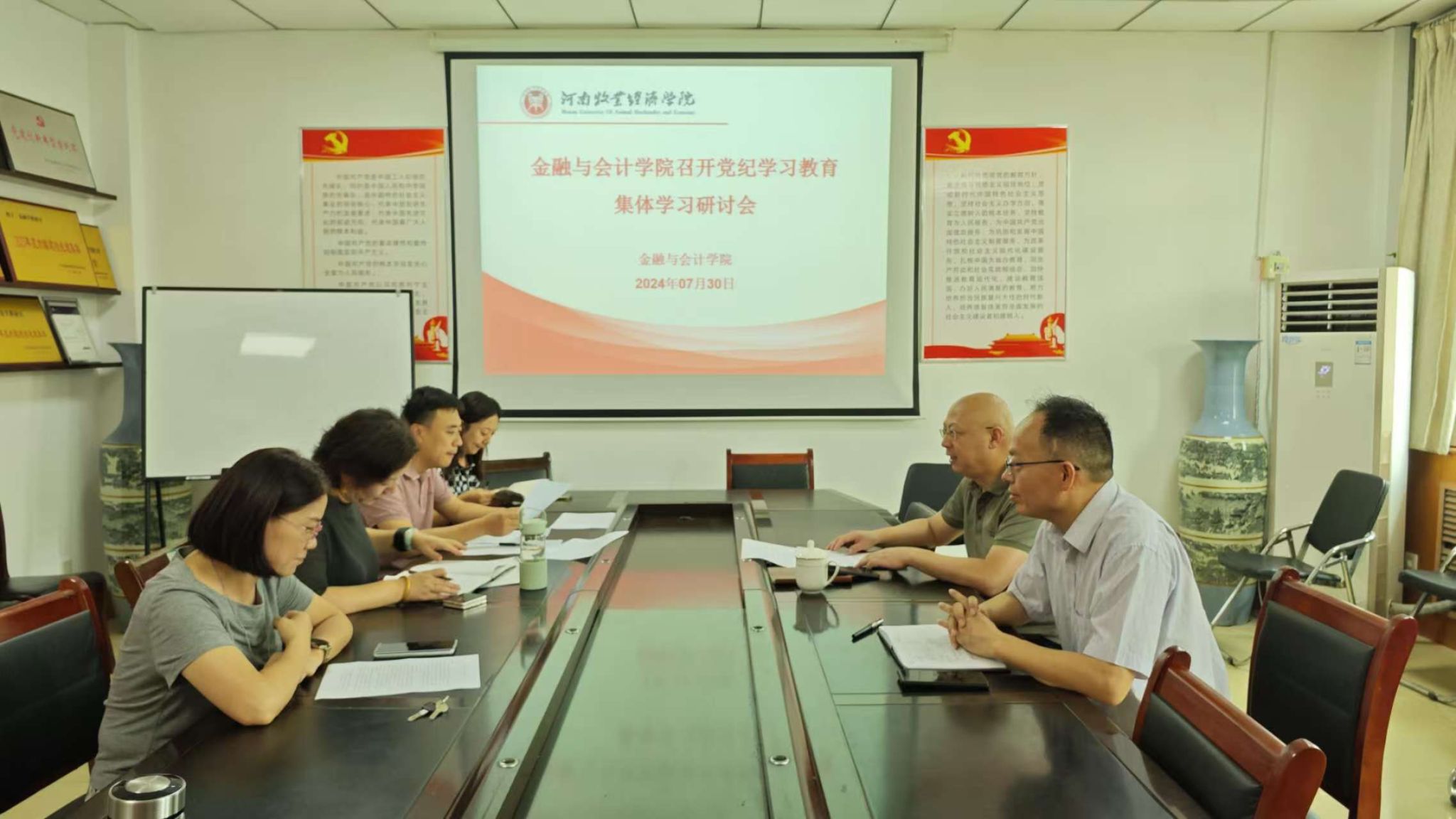 7月30日上午,世界杯体育官方网站在英才校区教学办公楼514会议室召开党委理论学习中心组党纪学习教育集中学习研讨会,会议由学院党委书记陈复昌主持。