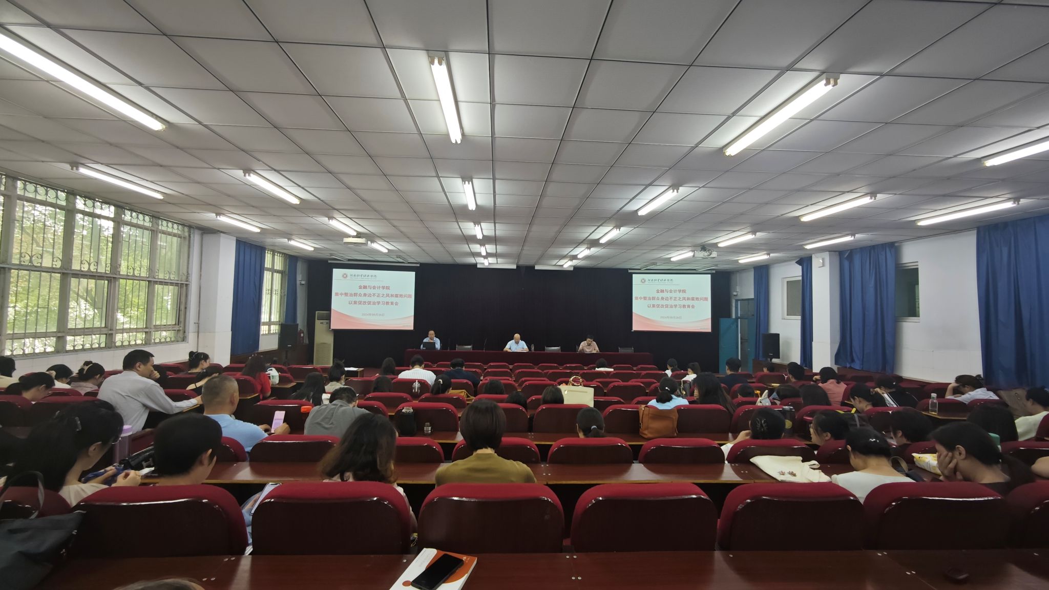 学院党委副书记、纪委书记汪晓伟领学了学院集中整治群众身边不正之风和腐败问题以案促改促治工作的指导思想、总体目标、具体内容、方式方法、具体要求以及典型案例,并就典型案例进行了剖析、向全体教职工提出要求。