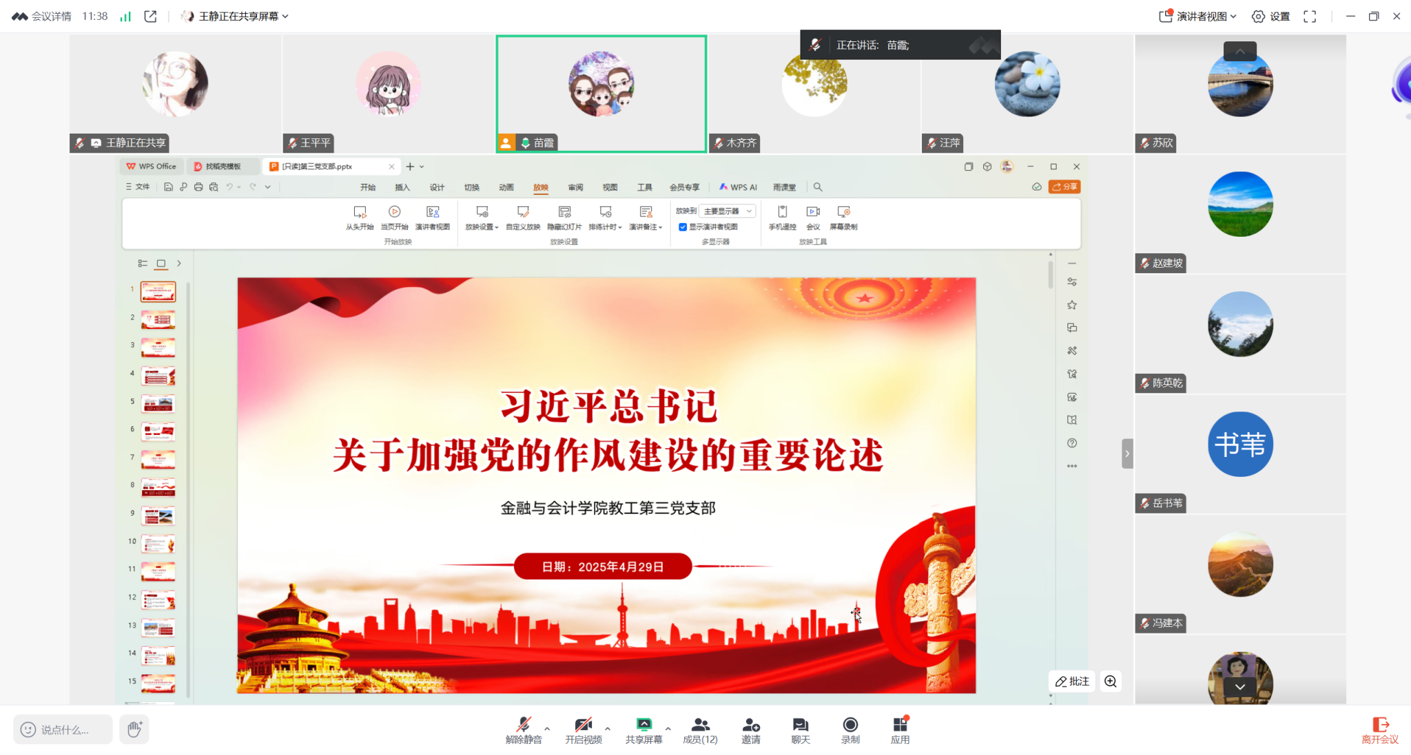 2025年4月29日,世界杯体育官方网站教工第三党支部以线上会议形式召开《习近平总书记关于加强党的作风建设的重要论述》专题学习会。会议由教工第三党支部书记苗霞同志主持,支部全体党员参加会议。