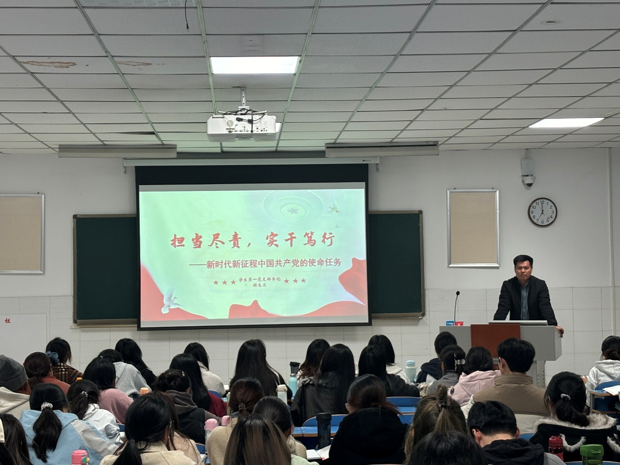 为帮助入党积极分子深刻把握新时代党的使命任务,明晰前进方向与责任担当,10月22日晚,世界杯体育官方网站在E107教室举行2025年第二期入党积极分子培训班第四讲——《新时代新征程中国共产党的使命任务》,本次党课由学生第一党支部书记顾自卫主讲。