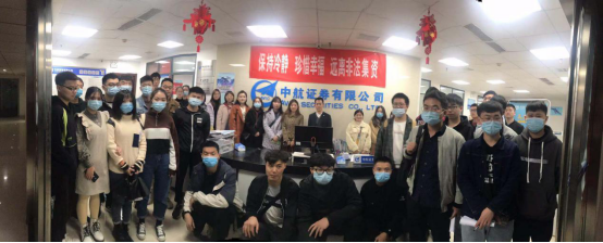 活动过程中,首先由营业部负责人田彦华总经理对公司的股东结构、主营业务以及一些代表案例进行介绍,其次由资深投资顾问张建鹏对当前的资本市场法规、发展现状、以及消费者行为做了深入的汇报。最后,陈欢经理带领同学们参观了中航证券的主要业务部门包括机构业务和经纪业务,并对证券公司相关岗位进行了简要介绍包括柜台岗、投资顾问岗以及财务咨询岗等。