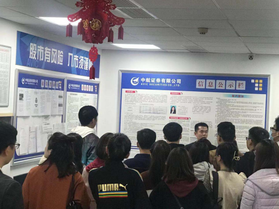 为深化校企合作,本学期17级投资学专业开展了校外实践课程。为促进的学生更好地掌握专业技能知识,增强对当前资本市场以及投资者行为偏好的理解,11月17日上午9:00,世界杯组织该专业学生在指导老师老师范聪颖的带领下前往中航证券商务外环营业部参观学习。