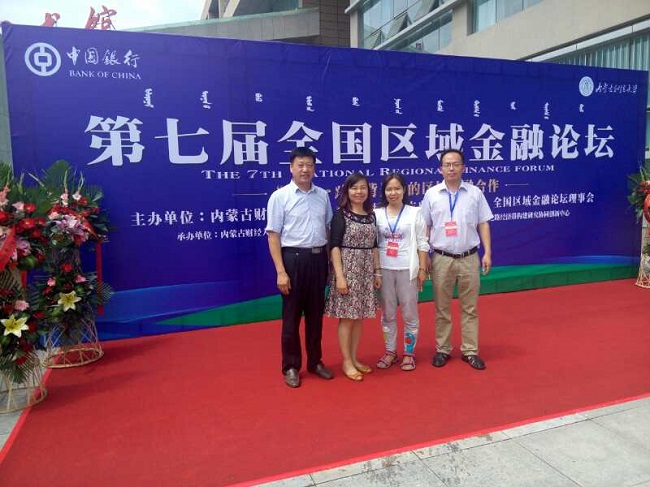 应全国区域金融论坛理事会邀请,世界杯副书记兼副院长贾宪军博士带领陈红玲、张雪凤两位副教授,于7月22日赴内蒙古财经大学参加了第七届全国区域金融论坛。我校社科办宋平主任一同参加了会议。
