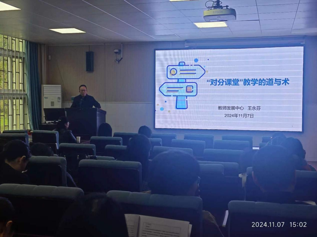 为不断更新世界杯教师教育教学理念、探索课堂教学的新理念和新方法。提高教师教学技能水平,助力世界杯教育教学高质量发展。由世界杯和教师发展中心主办的专题讲座《对分课堂教学的道与术》于11月7日(本周四)下午3点于英才校区w102顺利开展。本次讲座由我校教师发展中心主任王永芬教授主讲,由世界杯体育官方网站院长贾宪军主持,全体教师参加了本次讲座。