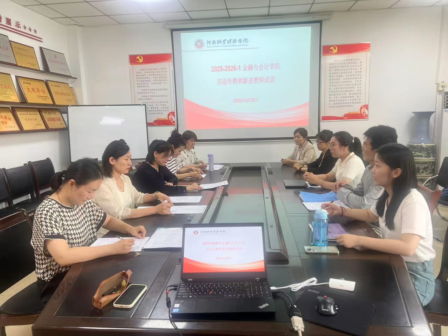 此次活动邀请了校内督导郭丽婷,副院长崔海红、审计教研室主任郭一恒,国际会计和大数据会计教研室主任李敏敏、郭玲玲担任了评审专家。五位试讲老师精心准备了教案和PPT,对拟授课课程的一个知识点进行了不少于20分钟的讲授。