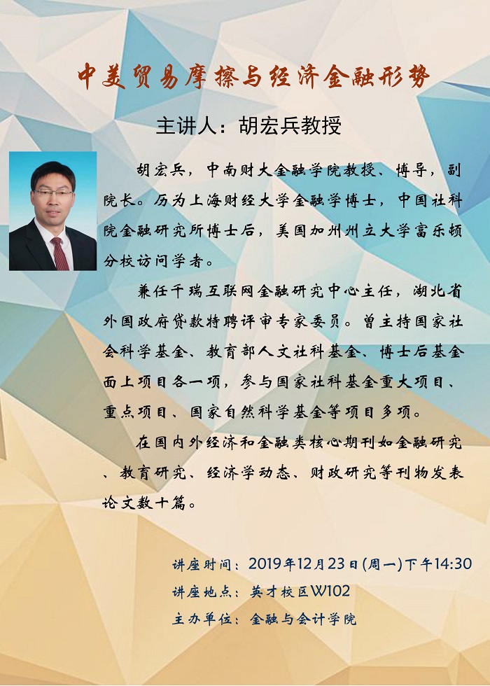 学术讲座海报——中美贸易摩擦与经济金融形势