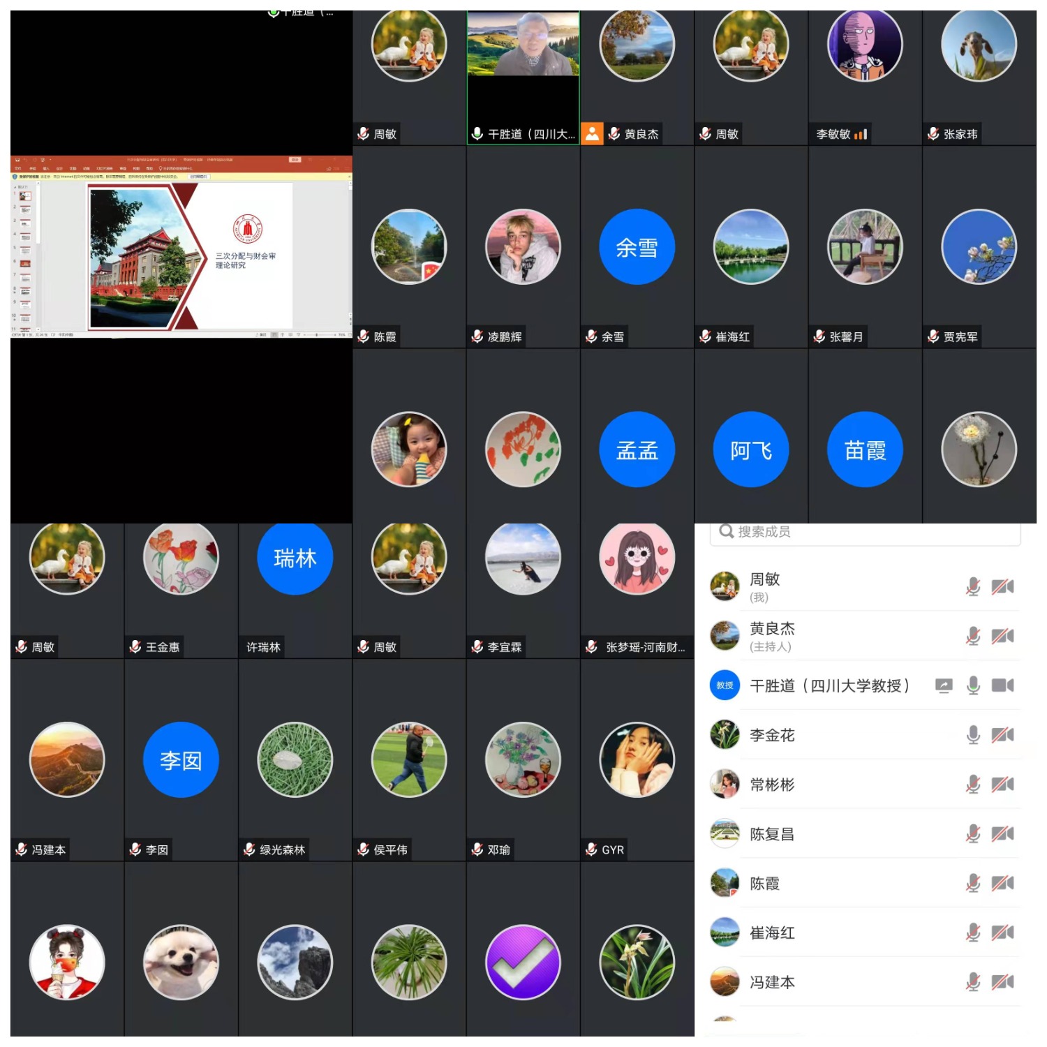 12月16日晚上19点,世界杯体育官方网站特邀四川大学商学院会计学教授、博士生导师、博士后合作导师干胜道,在腾讯会议为世界杯教师作了题为“三次分配与财会审理论研究”的专题讲座,讲座由世界杯体育官方网站院长黄良杰主持。