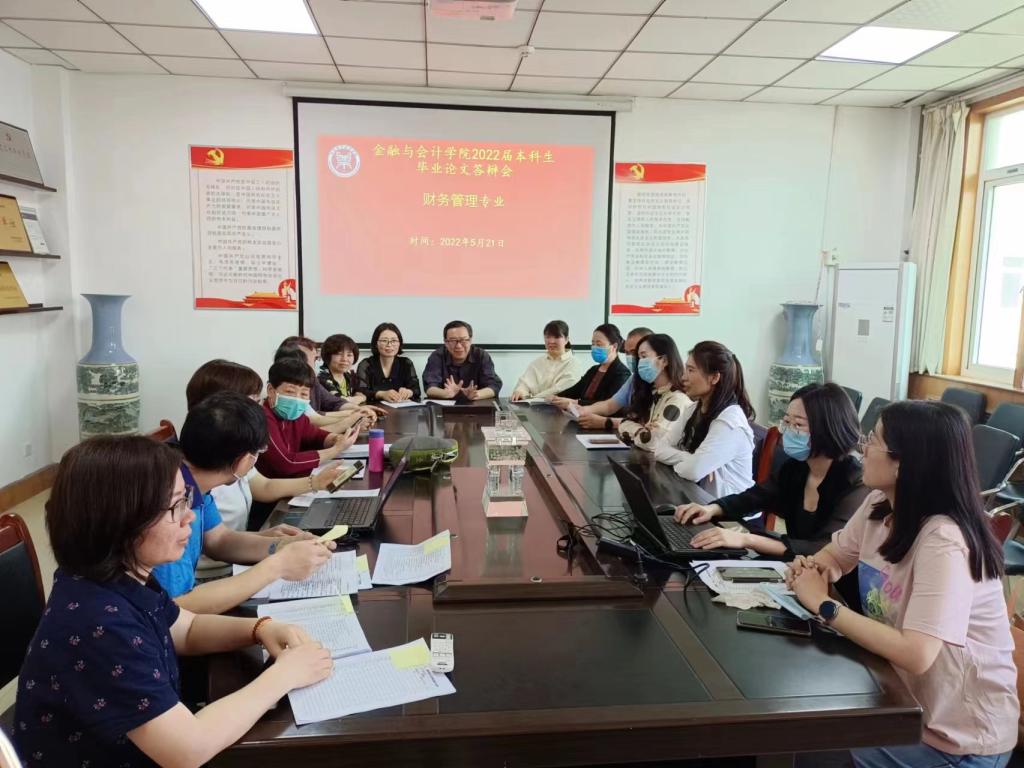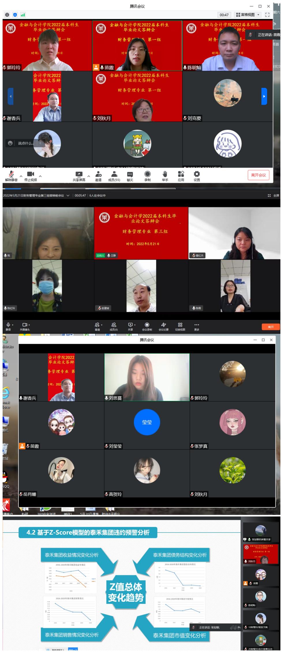 2022年5月21日,世界杯体育官方网站财务管理专业2022届本科毕业生第一批毕业论文答辩如期举行。经过重复率检测、论文评阅等环节,共287名学生参加了本轮答辩。根据学校疫情防控工作要求,财务管理专业各答辩小组合理选择线上答辩平台,搭建答辩空间,确保答辩工作顺利完成。