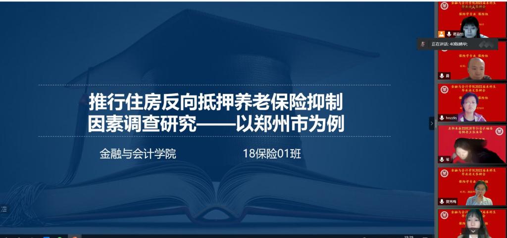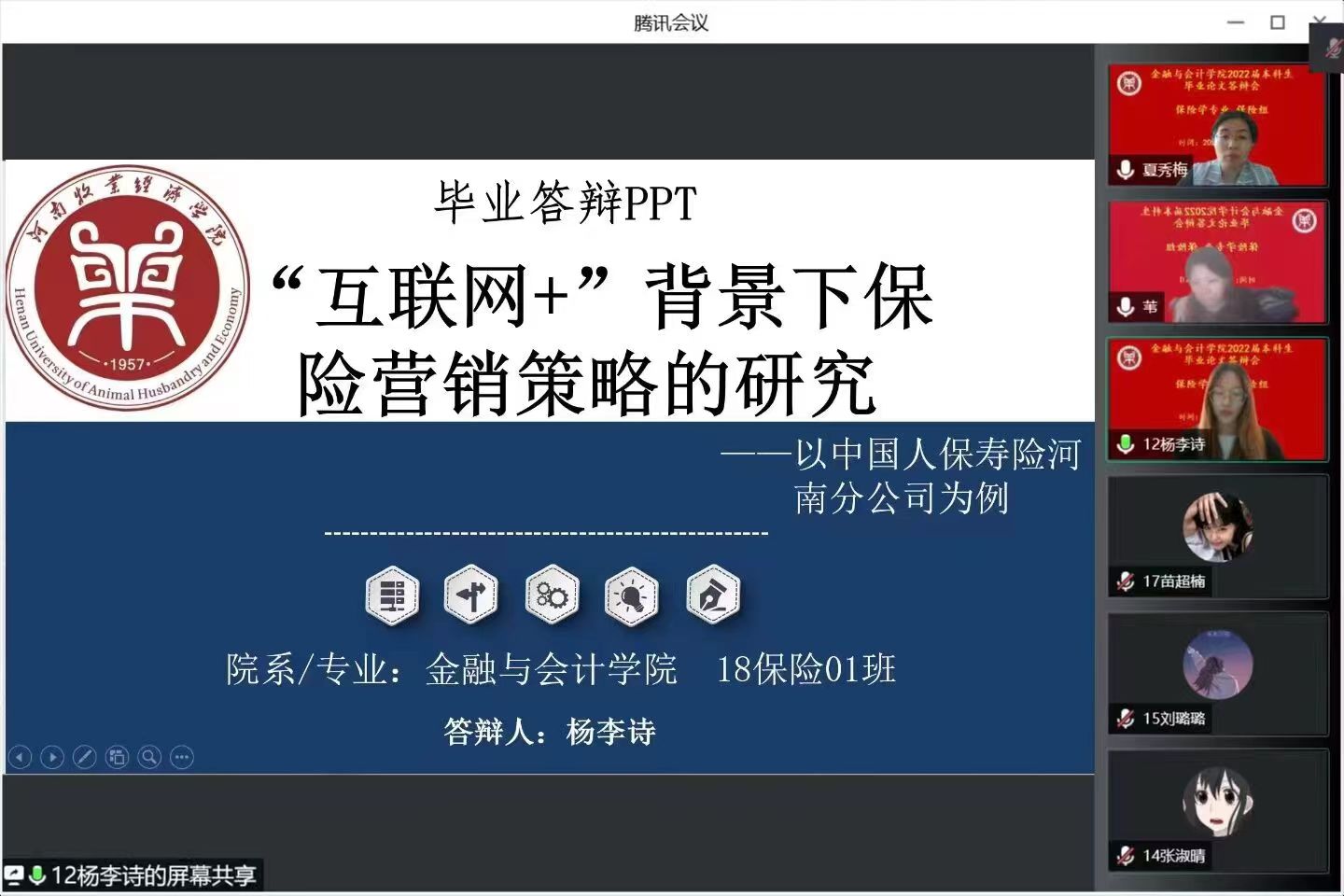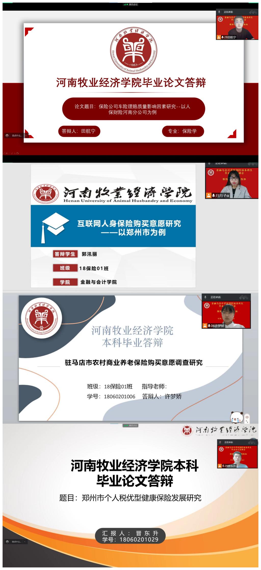 2022年5月16日, 世界杯体育官方网站2022届保险学本科生顺利完成了毕业论文答辩。因受疫情影响,按照学院安排,本次论文答辩采用线上答辩的方式进行。