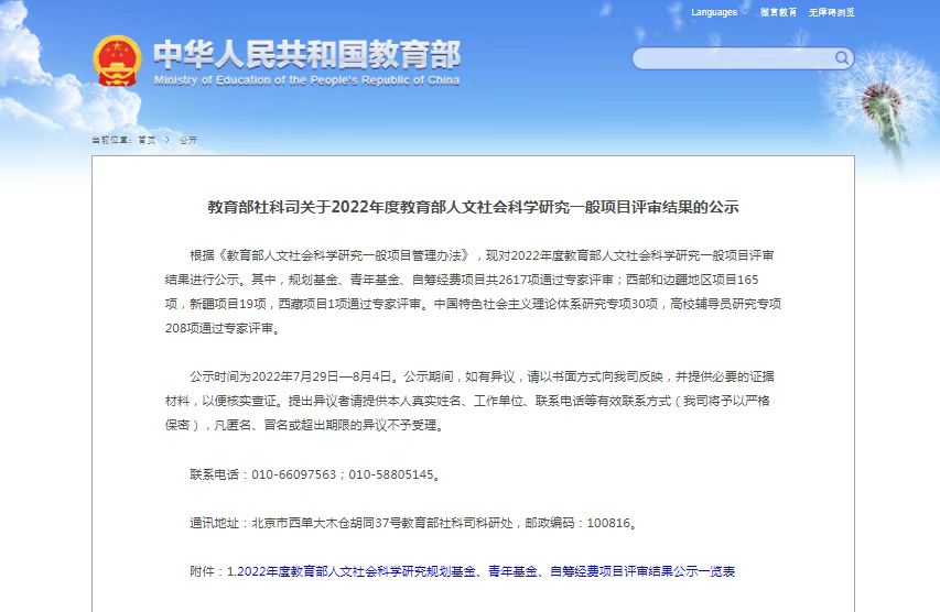 教育部人文社会科学研究项目是教育部面向全国普通高校等学校设立的重要研究项目,覆盖面广、影响大,在人文社科研究领域具有较强的示范和引导作用。近年来,世界杯高度重视国家级项目和教育部人文社科研究项目的申报工作,组织院内青年教师主动参与、积极申报,并多次邀请国内相关领域知名专家审核申报材料、指导项目申报。此次立项是世界杯教师在教育部人文社会科学研究项目上取得的又一重要成果,彰显了世界杯的学术科研实力和学科整体水平。