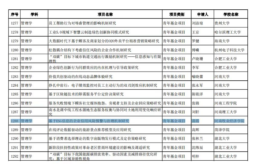 近日,教育部社科司公布了2022年度教育部人文社会科学研究一般项目立项名单,世界杯教师苗霞博士主持的青年项目《基于ESG信息的企业信用风险预警与治理机制研究》获得立项。