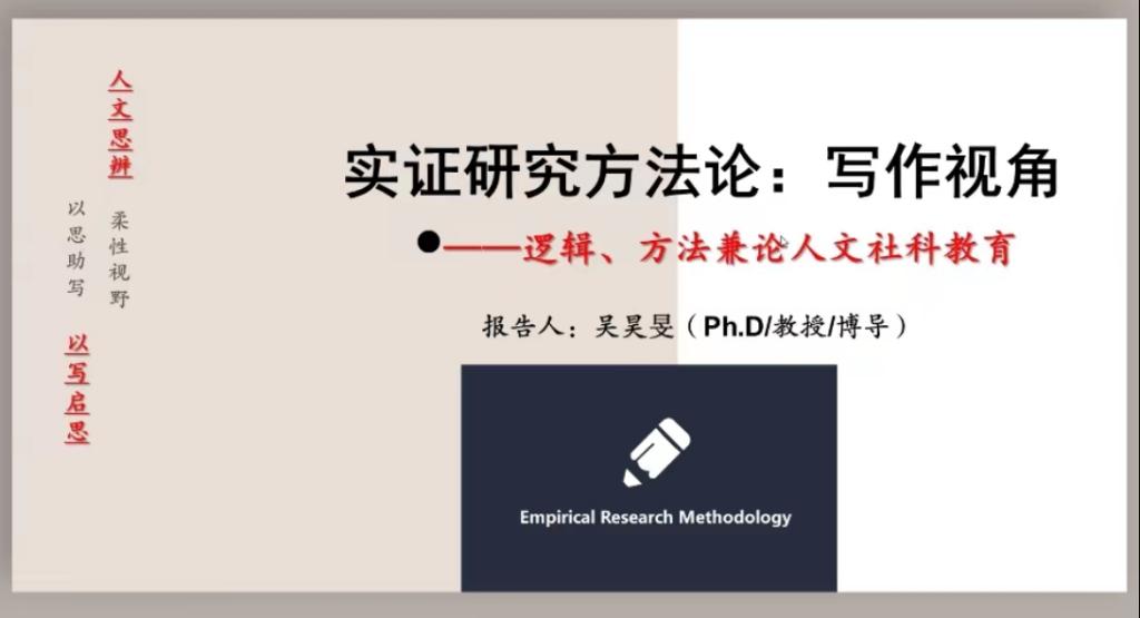 吴教授以求知贵在悟道开放式讨论开始,依托新著,结合自身科研经历,从结构化思维、背景之纵观、理据之充实、示范与引导等四个方面娓娓道来,抽丝剥茧,与大家分享实证论文写作的秘籍。讲座结束时,吴教授还充分肯定读书尤其是诵读古诗词的重要性,并认为教育是一种情感投入。