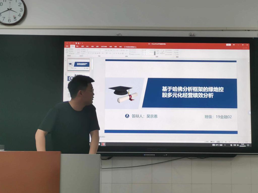 首先,答辩学生进行了毕业论文的PPT展示和论文阐释,针对自己的毕业论文开展情况和研究内容进行了介绍陈述,包括阐释了选题依据和研究意义、研究基本思路和主要研究内容、主要创新点及不足等内容。其次,论文答辩组指导教师根据论文撰写情况提问并提出修改建议,学生根据老师提出的问题予以回答;最后,答辩组指导老师根据学生毕业论文中文献综述、研究思路和内容,以及实证方法和技术分析等内容进行了综合指导,提出修改建议,为学生毕业论文最终稿修订完善进行了指导。