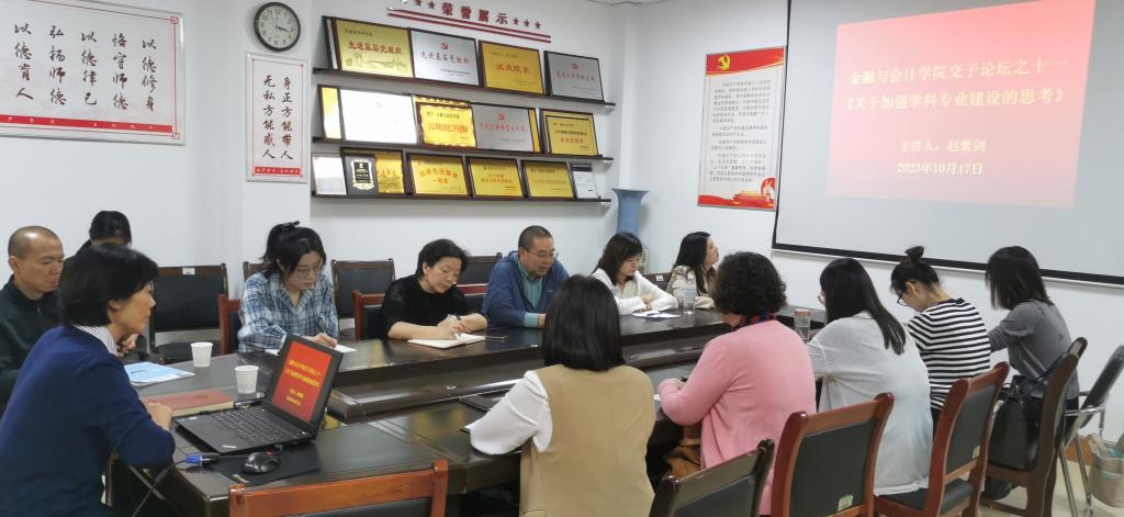 2023年10月17日下午,世界杯体育官方网站在英才校区514会议室举办“交子论坛”活动,本次活动特邀河南财经政法大学金融学院院长赵紫剑教授做关于加强学科专业建设的专题讲座。世界杯体育官方网站部分教师到场聆听,讲座由院长黄良杰教授主持。