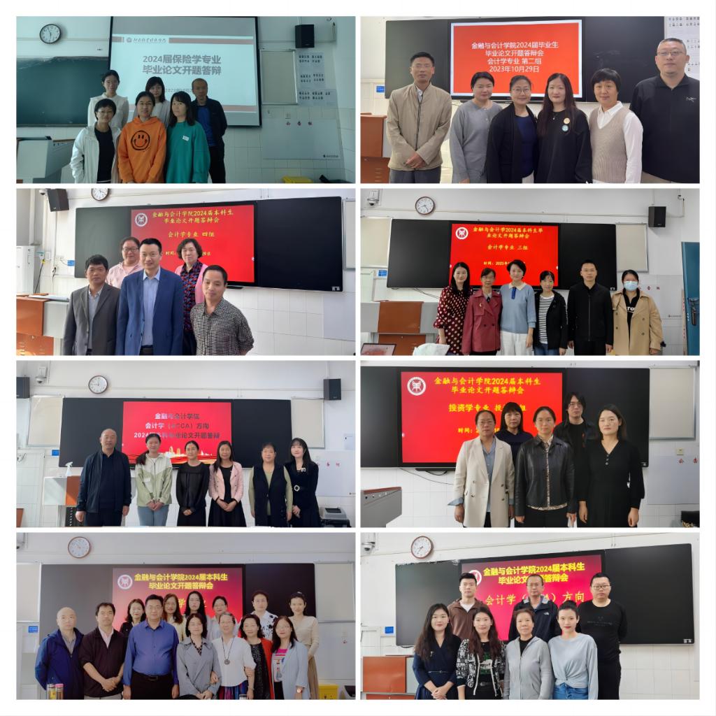 2023年10月26日至10月29日,世界杯体育官方网站在英才校区教学楼进行了会计学、财务管理、审计学、投资学、金融学、保险学等六个专业的本科毕业论文开题答辩,共19个答辩小组,1151名学生参加了本次开题答辩。