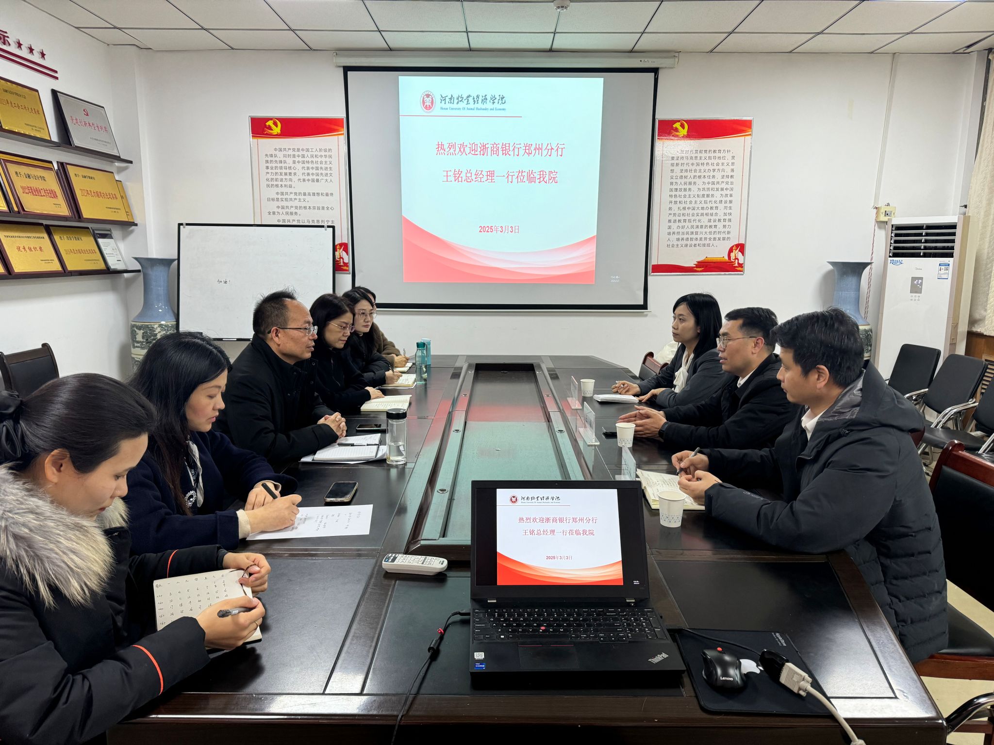 为深入贯彻国家乡村振兴战略实施,探讨如何更好地通过金融服务助力农业产业链发展,3月3日下午,浙商银行郑州分行王铭总经理一行在世界杯体育官方网站514会议室,以“农业供应链金融”为主题与世界杯展开交流活动,旨在分享农业供应链金融领域的创新实践与经验。世界杯体育官方网站院长贾宪军、副院长崔海红、部分博士及教师代表参加了此次会议。