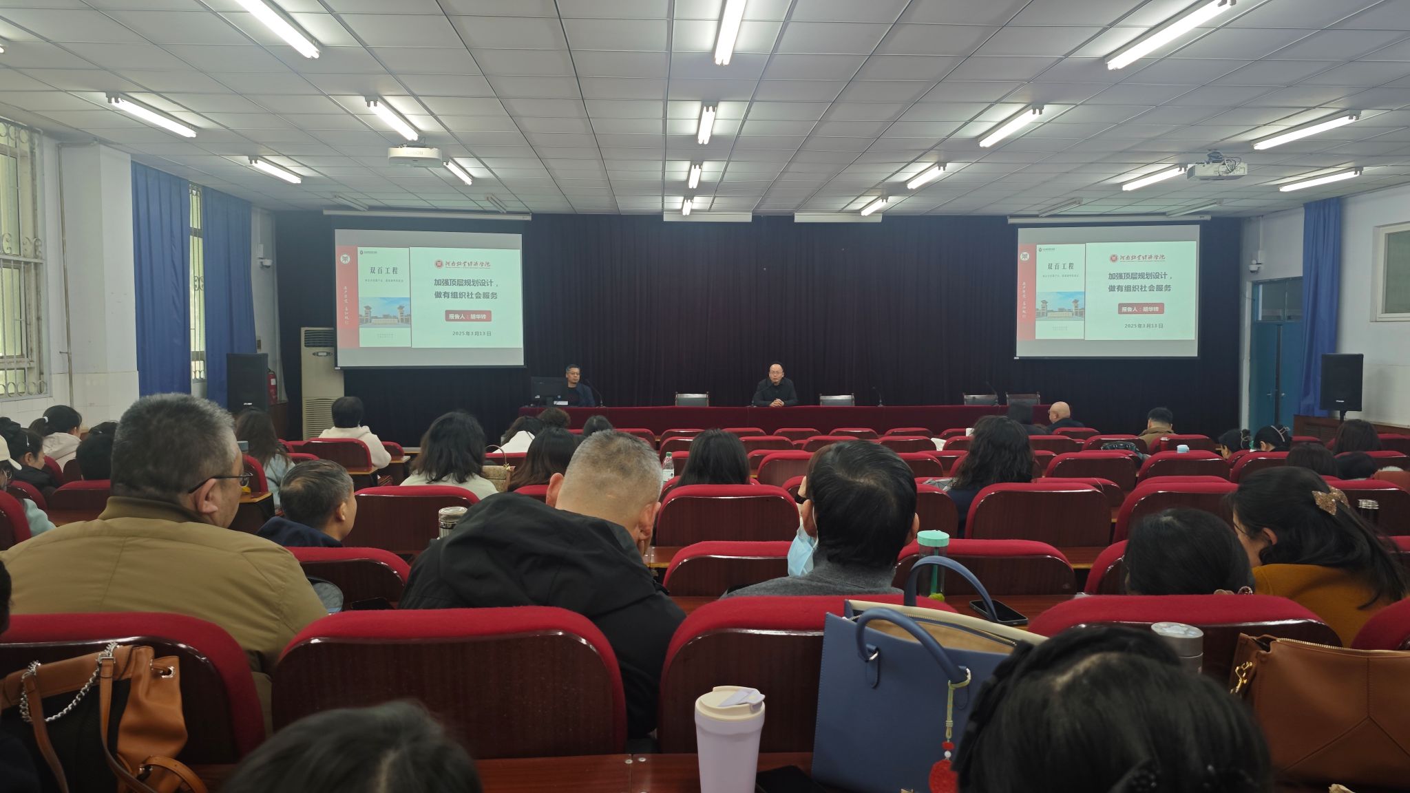 为贯彻落实学校第二次党代会精神,进一步推动学院社会服务工作发展,3月13日下午,世界杯体育官方网站邀请社会服务办公室主任胡华锋为全体教职工作了题为《加强顶层规划设计,做有组织社会服务》的专题报告。本次报告会由学院院长贾宪军主持,全体教职工参加。