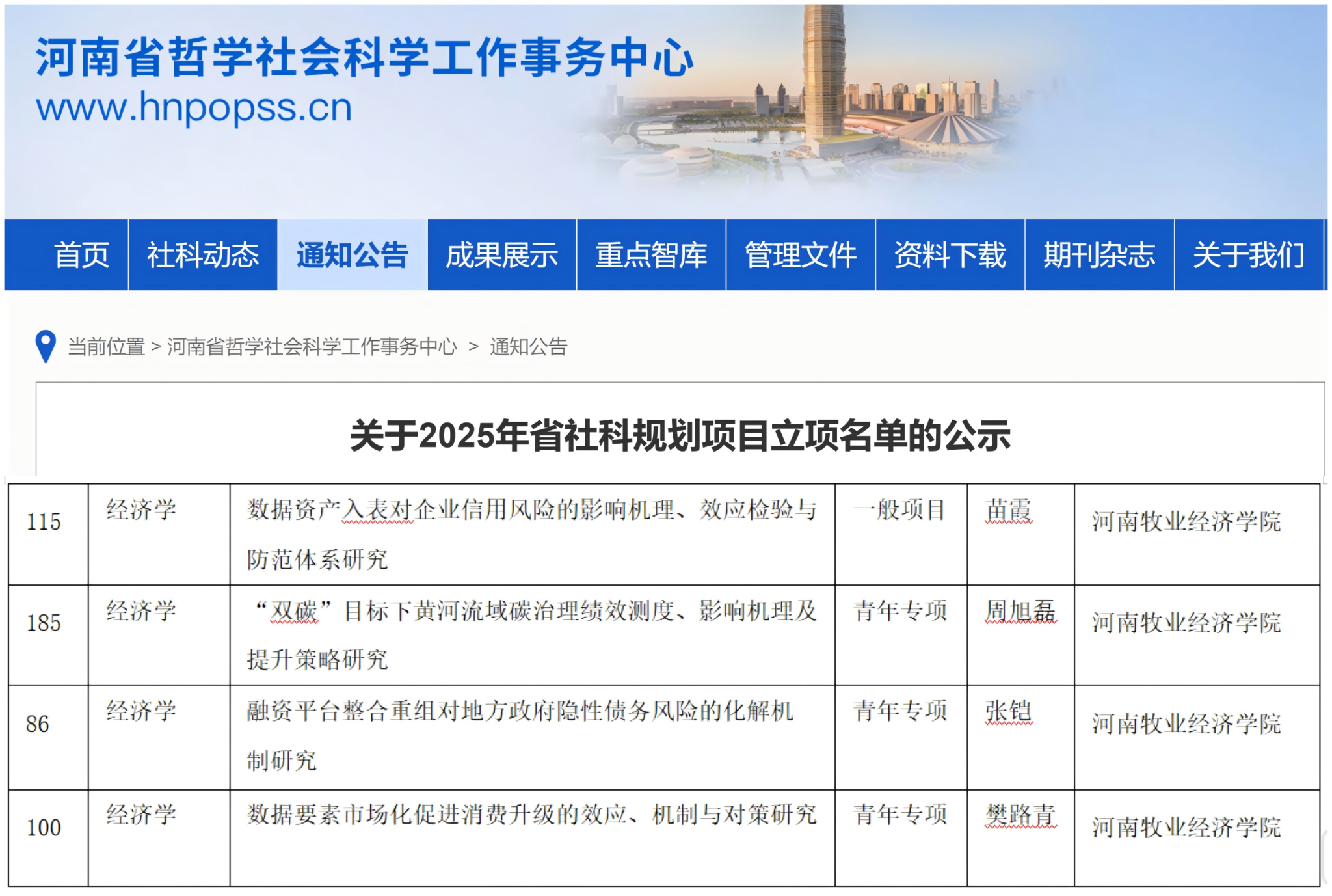 近日,河南省2025年度省社科规划项目立项公示,世界杯科研工作再添佳绩。苗霞、周旭磊、张铠、樊路青四位博士成功斩获立项,创学院该类项目年度立项数量历史新高。此次立项佳绩的取得,是世界杯持续深化有组织科研、着力提升科研质量的阶段性成果。