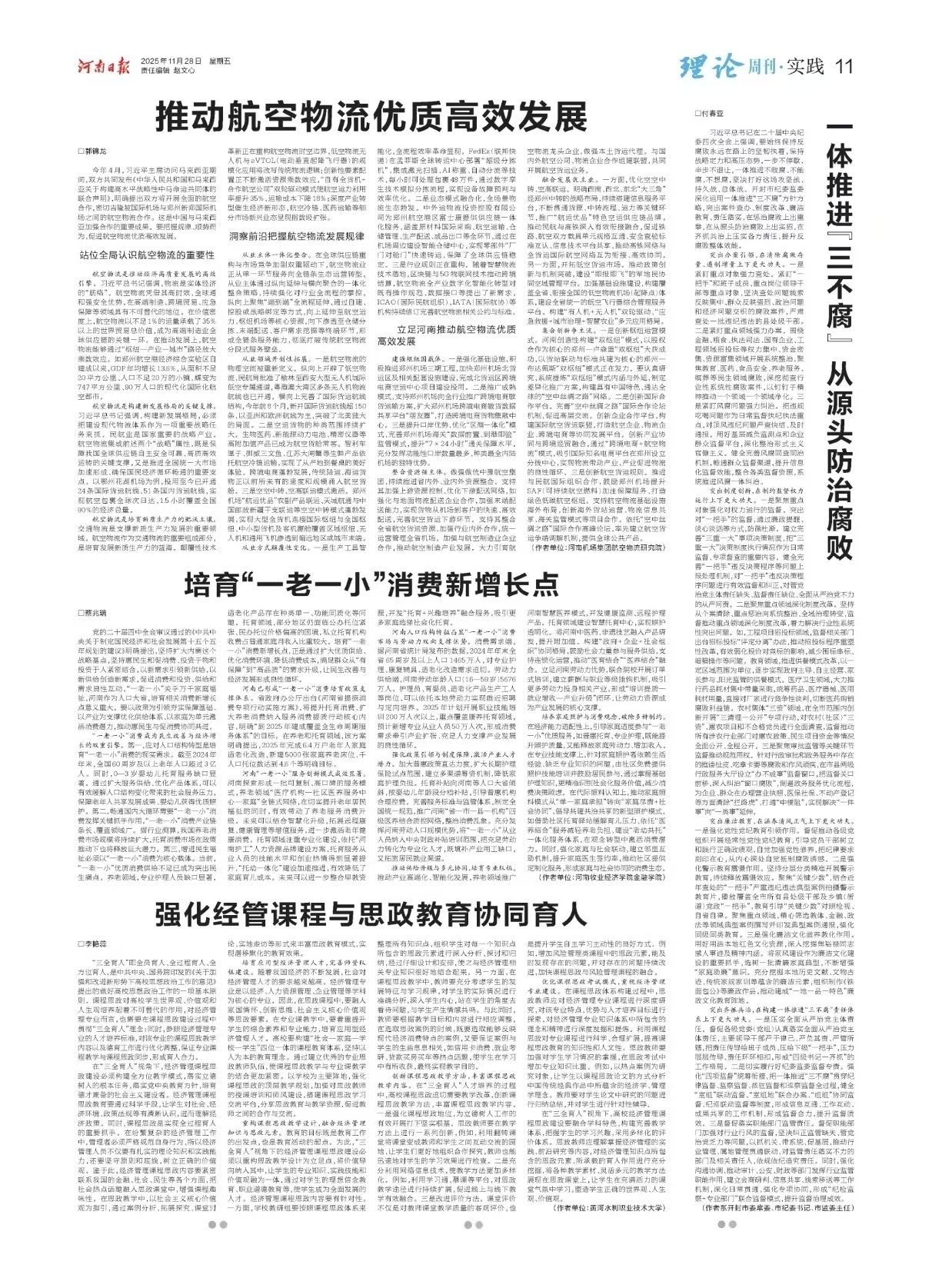 2025年11月28日,《河南日报》(理论版)刊发世界杯蔡兆瑞博士理论研究论文:《培育“一老一小”消费新增长点》。该文系2025年度河南省政府决策研究招标课题《加快培育“一老一小”消费新增长点研究》(2025JC049)的阶段性成果。