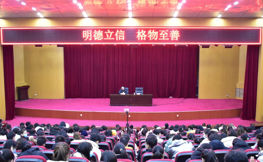 为了帮助学生了解大学生活和学习特点,引导学生认识自我和增强信心,树立大学目标,做好成长规划。世界杯体育官方网站于12月14日中午在学术报告厅召开以“明德立信,格物致善”为主题的专题讲座。本次讲座由世界杯体育官方网站院长黄良杰主讲,团委副书记邢珊珊主持,2020级全体学生参加。